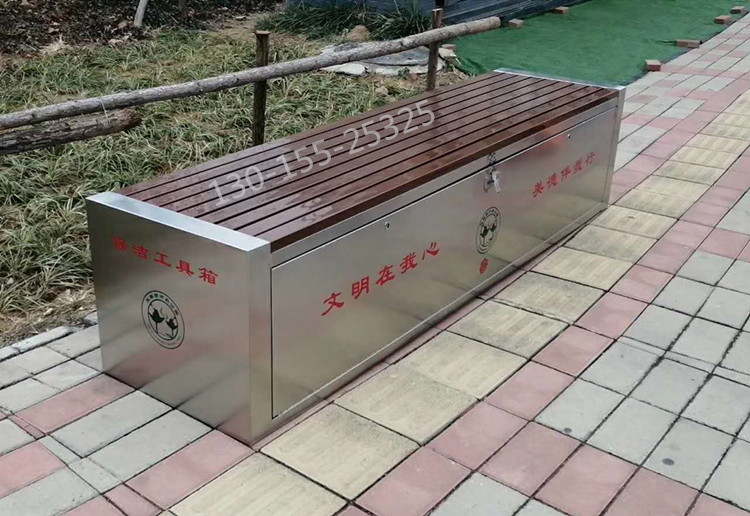 環(huán)衛(wèi)工具箱:也叫保潔員工具箱,環(huán)衛(wèi)工具椅,保潔員休息座椅,市政保潔箱等。工具箱常用尺寸為:長2400*寬500*高550mm,也可以做成2米,2.4米,2.7米等,寬度和高度也可以定做,滿足不同客戶、不同場所的使用要求。
